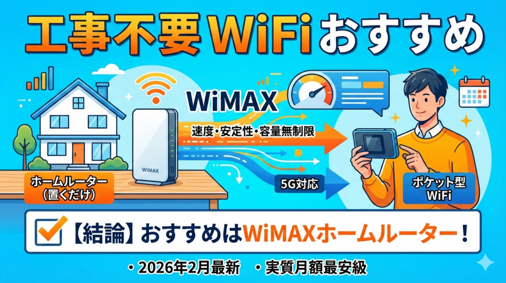 工事不要WiFiおすすめ4社比較!自宅向けホームルーターの最適解【2026年2月】