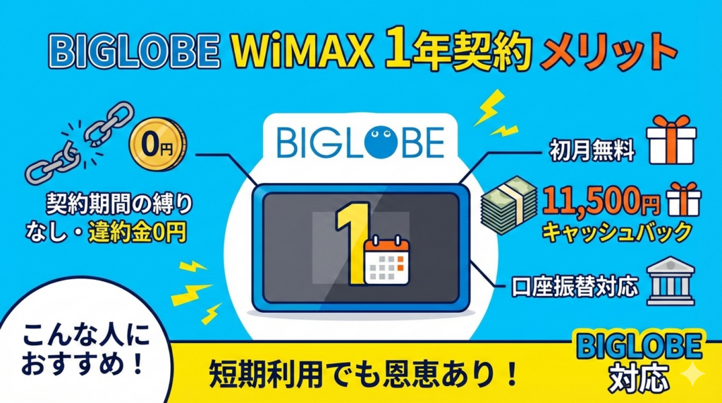 BIGLOBE WiMAXは1年契約でもお得?5つのメリットと注意点を徹底解説【2026年2月最新】