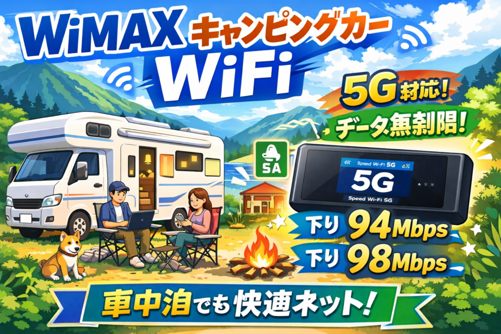 キャンピングカーで快適なWiFi環境を手に入れたいなら、データ無制限・5G対応・持ち運び自由なWiMAXが有力な選択肢です。本記事では、実際に車中泊や日本一周旅で使われたWiMAXの実測データ・口コミをもとに、キャンピングカー用途での実力と最適なプロバ... -