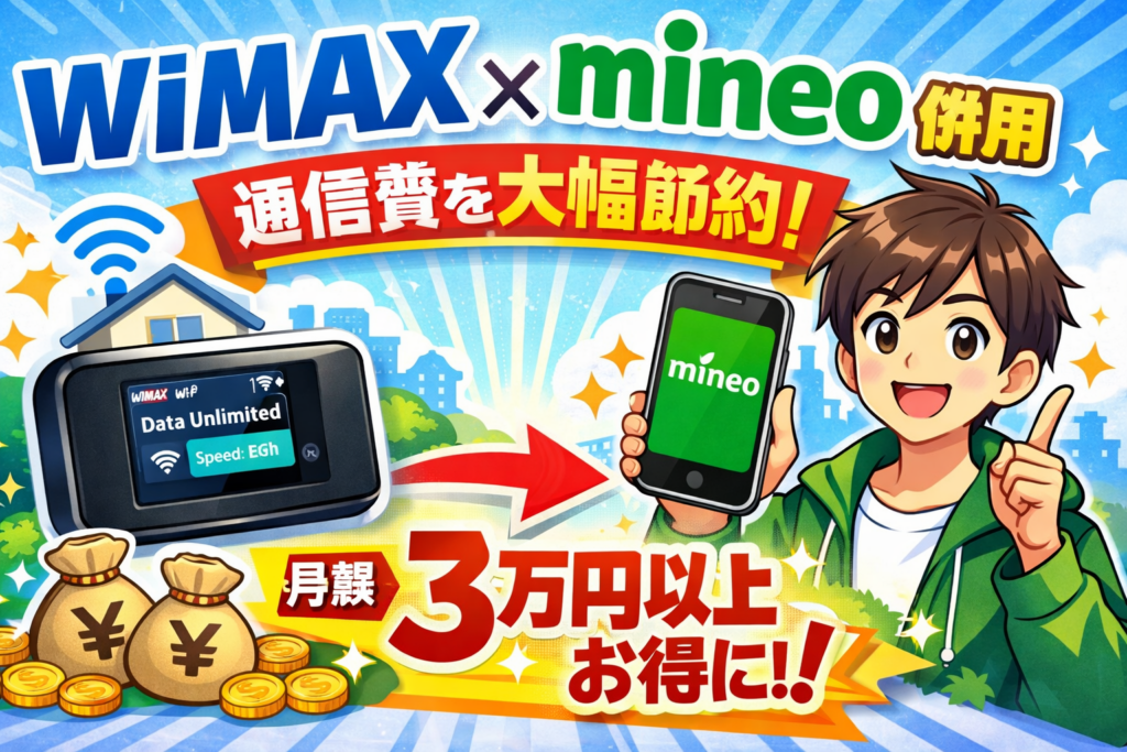 WiMAXとmineoを併用して年間3万円節約!料金・設定・おすすめプラン完全解説【2026年最新】