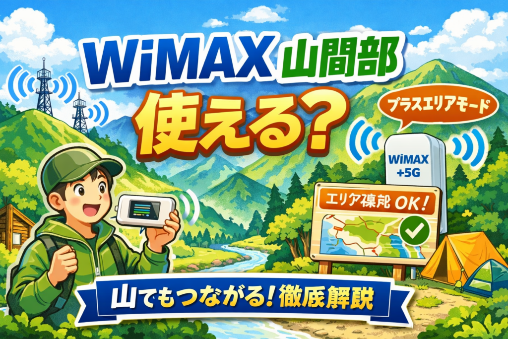 WiMAXは山間部でも使えるのか——結論から言えば、スタンダードモードだけでは厳しい場面があるものの、プラスエリアモード(auプラチナバンド)の活用やエリア事前確認を行えば、十分に実用レベルで利用できます。本記事では2026年最新情報をもとに、具体的... -