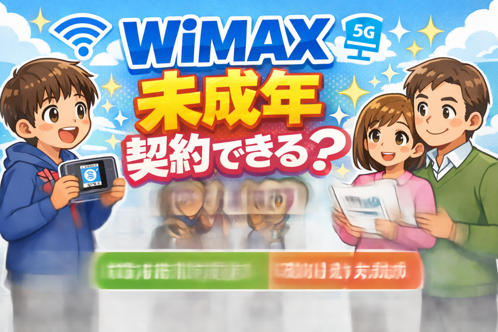 WiMAXは未成年でも契約できるのか――結論から言うと、18歳以上であれば自分名義で契約可能、18歳未満でも親名義で契約すれば利用できます。本記事では、2022年の民法改正を踏まえた最新の契約条件、必要書類、支払い方法、おすすめプロバイダまで徹底解説し... -