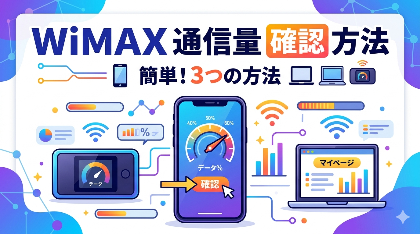 WiMAXの通信量を確認する方法は、端末本体の通信量カウンター、専用アプリ(NEC WiMAX +5G Toolなど)、そしてプロバイダのマイページ(my UQ WiMAXなど)の3つです。本記事では、それぞれの手順を端末別に詳しく解説し、速度制限の条件や通信量を節約するコツまで網羅的にお伝えします。
