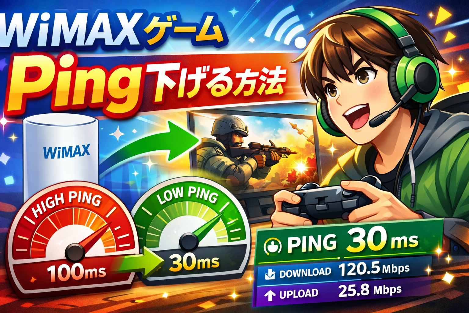 WiMAXでオンラインゲームをプレイしていて「ラグが酷い」「Ping値が高すぎる」と悩んでいませんか。結論から言うと、WiMAXのPing値は設置場所・接続方法・端末設定を最適化すれば、平均46msから30ms台まで改善できる可能性があります。本記事ではWiMAX固有の設定を含む具体的な改善方法を網羅的に解説します。