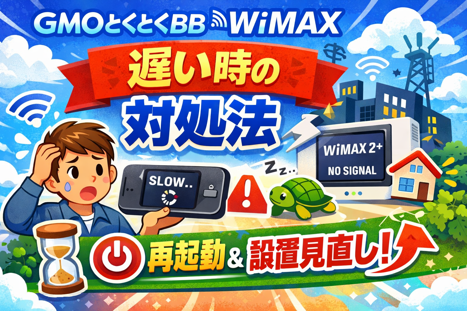 GMOとくとくBB WiMAXが遅いと感じたとき、原因の多くはルーターの設置場所や設定、通信モードの問題であり、自分で改善できるケースがほとんどです。この記事では、速度が遅くなる主な原因と今すぐ試せる8つの対処法を具体的な手順付きで解説します。