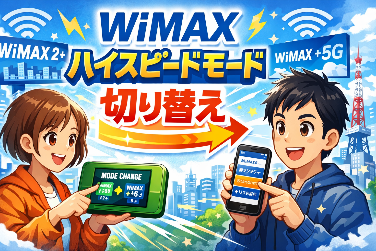 WiMAXの通信モード切り替えは、端末のボタン操作やアプリから数秒で完了します。ただし、切り替え先のモードによっては追加料金や速度制限が発生するため、仕組みを正しく理解してから操作することが重要です。この記事では、旧プラン(WiMAX 2+)のハイスピードモードから現行プラン(WiMAX +5G)のスタンダードモード・プラスエリアモードまで、切り替え手順・料金・注意点をすべて解説します。