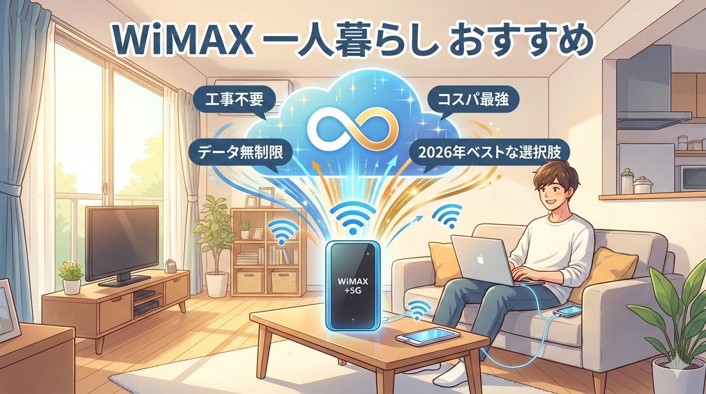 一人暮らしのWiFi環境にWiMAXを検討しているなら、結論から言えば「工事不要・データ無制限・コスパ最強」の三拍子が揃ったWiMAXは一人暮らしとの相性が抜群です。本記事では、主要プロバイダの実質月額料金を比較し、あなたの生活スタイルに合った最適な1台を見つけるお手伝いをします。