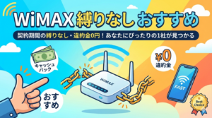 プロバイダによって異なります。GMOとくとくBBは2年契約(自動更新なし)ですが、カシモWiMAXやBIGLOBE WiMAXは契約期間の縛りがありません。縛りなしプランなら、いつ解約しても解約違約金は発生しません。ただし、端末代を分割払いにしている場合は、解約時に残債の一括支払いが必要になるケースがあるので注意してください。