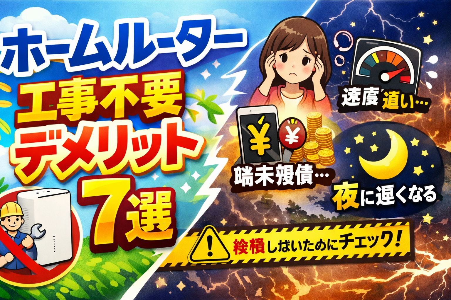 「ホームルーターは工事不要で手軽」と聞いて契約を検討しているものの、デメリットや落とし穴がないか不安に感じていませんか。結論から言えば、ホームルーターには「通信速度が光回線に劣る」「夜間に速度が落ちやすい」「途中解約で端末残債が発生する」など明確なデメリットが存在します。しかし、事前に把握しておけば回避・軽減できるものばかりです。