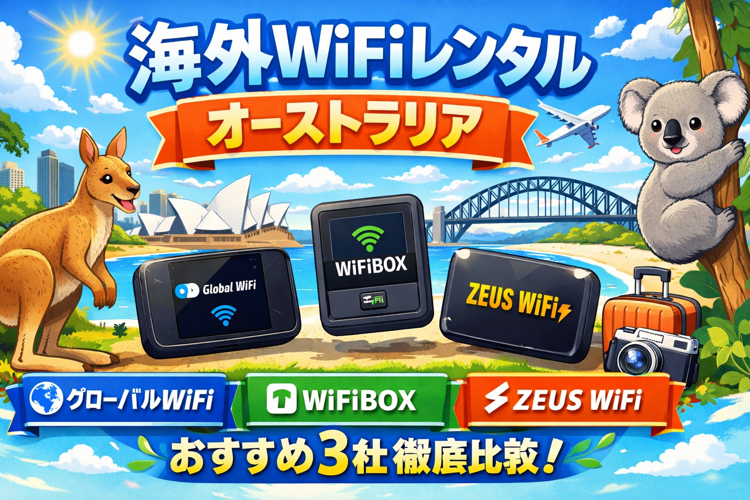オーストラリア旅行で快適にインターネットを使いたいなら、海外WiFiレンタルが最も安心で確実な方法です。本記事では2026年最新の料金・速度・容量を徹底比較し、グローバルWiFi・WiFiBOX・ZEUS WiFi for GLOBALなど主要6社からあなたに合った1台を見つけるお手伝いをします。