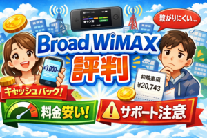 レビューサイトや比較サイトの分析によると、カシモWiMAXはキャッシュバックなどの特典を含めた実質月額料金では、GMOとくとくBB WiMAXやBroad WiMAXなどに劣る場合があります。「月額料金のシンプルさ」は魅力ですが、「とにかく最安で使いたい」という方は他社プロバイダとの実質料金比較をしっかり行うことをおすすめします。