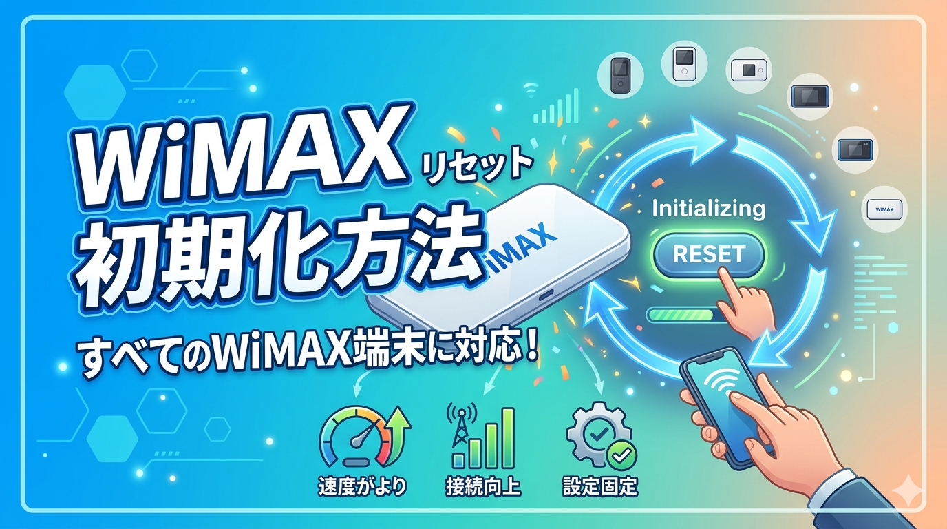 WiMAXルーターの調子が悪いとき、初期化(リセット)は最も効果的なトラブル解決手段の一つです。本記事では、現行機種から旧機種まで主要なWiMAX端末すべてのリセット・初期化方法を網羅的に解説します。「再起動と初期化の違いがわからない」「初期化したらどうなるのか不安」という方も、この記事を読めば安心して操作できるようになります。