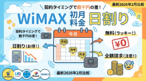 これからWiMAXの新規契約やプロバイダの乗り換えを検討している方は、WiMAX 5Gおすすめプロバイダ5選【2026年2月最新】料金・速度・端末を徹底比較して分かった最安の契約先で各社の料金やキャンペーンを比較したうえで、自分に最適なプロバイダを選んでください。