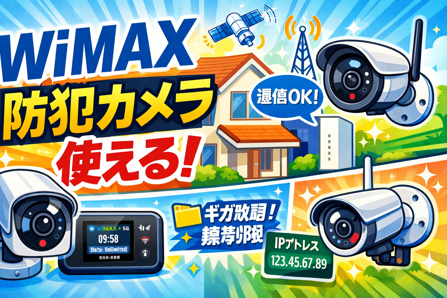WiMAXで防犯カメラ(ネットワークカメラ)は使えるのか?結論から言えば「使えます」。ただし、通信量・スリープ問題・IPアドレスなど、快適に運用するために押さえるべきポイントがあります。この記事では2026年2月時点の最新情報をもとに、WiMAXと防犯カメラの組み合わせを検討している方に向けて、具体的な設定方法やおすすめ機材、注意点までを網羅的に解説します。