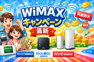 WiMAXプロバイダ各社のキャンペーン情報は頻繁に変わるため、最新の条件を公式サイトで確認してから申し込むのがおすすめです。各社の詳しいキャンペーン情報はWiMAXキャンペーン徹底比較の記事でまとめています。