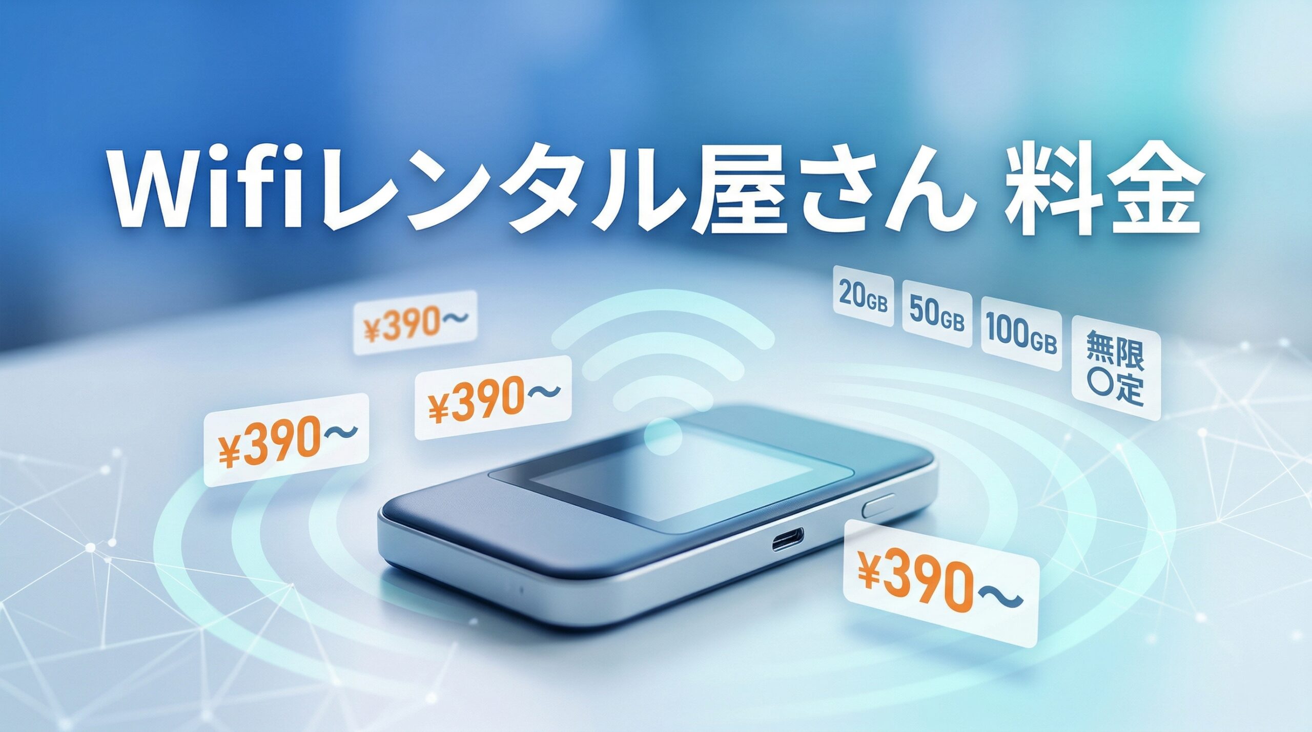 Wifiレンタル屋さんは1日390円(税込)から利用できる国内向けポケット型Wi-Fiレンタルサービスです。20GB・50GB・100GB・無制限の4つの容量帯があり、1泊2日の短期から6ヶ月パックの長期まで、利用日数に応じた明瞭な料金体系が特徴です。この記事では全プランの料金表・送料・オプション費用を一覧で比較し、あなたに最適なプランの選び方まで詳しく解説します。