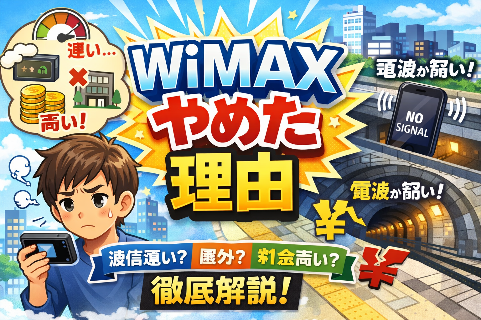 WiMAXをやめた理由で最も多いのは「通信速度の不安定さ」「屋内・地下での電波の弱さ」「月額料金のコスパへの不満」の3つです。本記事では、実際にWiMAXを解約したユーザーのリアルな口コミをもとに、やめた理由を徹底分析し、あなたが後悔しない判断ができるよう具体的なデータと代替案を紹介します。