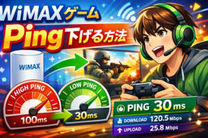 WiMAXの平均Ping値は約45msで、ライブ配信の映像送出自体にPing値はそこまで大きく影響しません。ただし、オンラインゲームを「プレイしながら」配信する場合は話が別です。FPSや格闘ゲームなどPing値10〜20ms以下が理想とされるジャンルでは、WiMAXの45msでは操作の遅延を感じる可能性があります。カジュアルなゲームや対戦要素の少ないゲーム配信であれば問題ないケースが多いですが、ガチの対戦ゲーム配信には光回線の方が適しています。